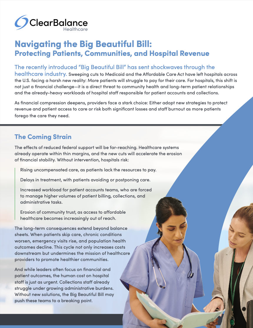 The recently introduced “Big Beautiful Bill” has sent shockwaves through the healthcare industry. Sweeping cuts to Medicaid and the Affordable Care Act have left hospitals across the U.S. facing a harsh new reality: More patients will struggle to pay for their care. For hospitals, this shift is not just a financial challenge—it is a direct threat to community health and long-term patient relationships and the already-heavy workloads of hospital staff responsible for patient accounts and collections.
